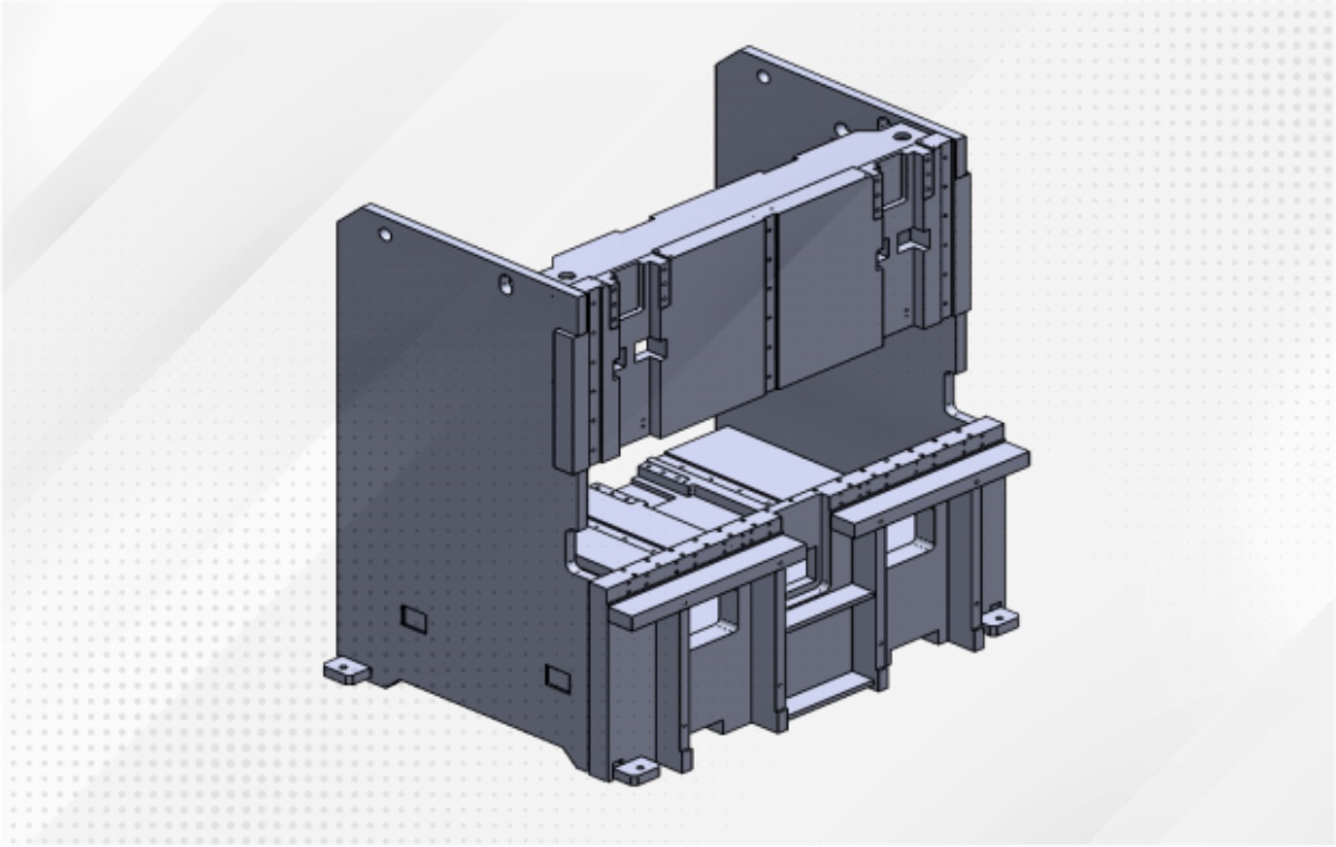 Soldada com placas de aço grosso de alta qualidade, otimizada por análise de elementos finitos e recozida para garantir durabilidade, oferecendo alta precisão, mínima deformação, alta resistência e rigidez para uma operação estável a longo prazo.